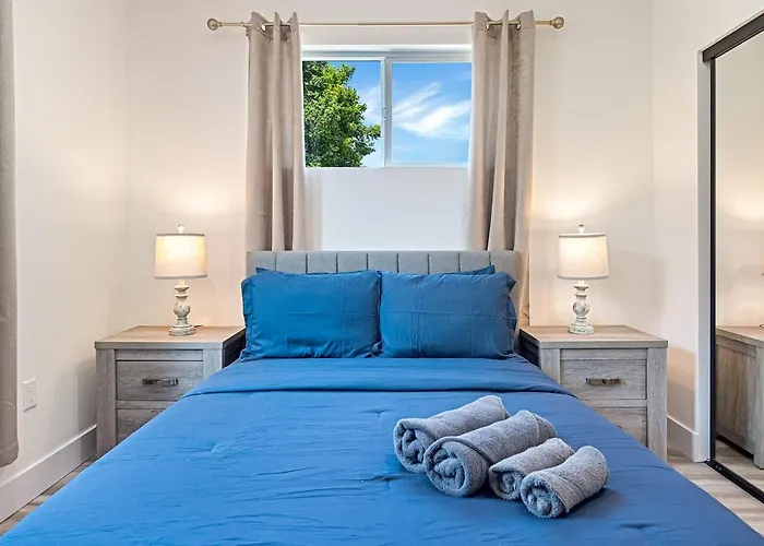 ミュージアム オブ デスはこの別荘から車で10分で、ステイプルズ・センターから自動車で約15分先にあります。 ショッピング愛好家には、グランド・セントラル・マーケットから6キロメートルの距離のロケーションがお勧めです。